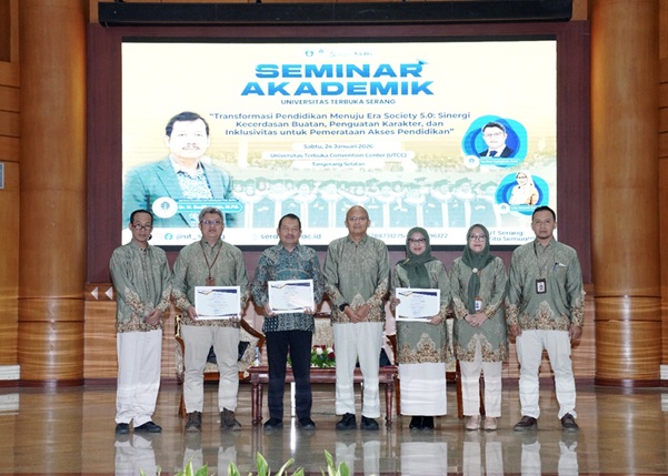 Tangerang Selatan, 24 Januari 2025 — Universitas Terbuka (UT) Serang menyelenggarakan Seminar Akademik bertema “Transformasi Pendidikan Menuju Era Society 5.0: Sinergi Kecerdasan Buatan, Penguatan Karakter, dan Inklusivitas untuk Pemerataan Akses Pendidikan”. Kegiatan ini merupakan bagian dari komitmen Universitas Terbuka Serang dalam memperkuat peran pendidikan tinggi sebagai penggerak utama pembangunan sumber daya manusia yang adaptif, berkarakter, dan inklusif di tengah dinamika perubahan sosial dan percepatan perkembangan teknologi digital.
