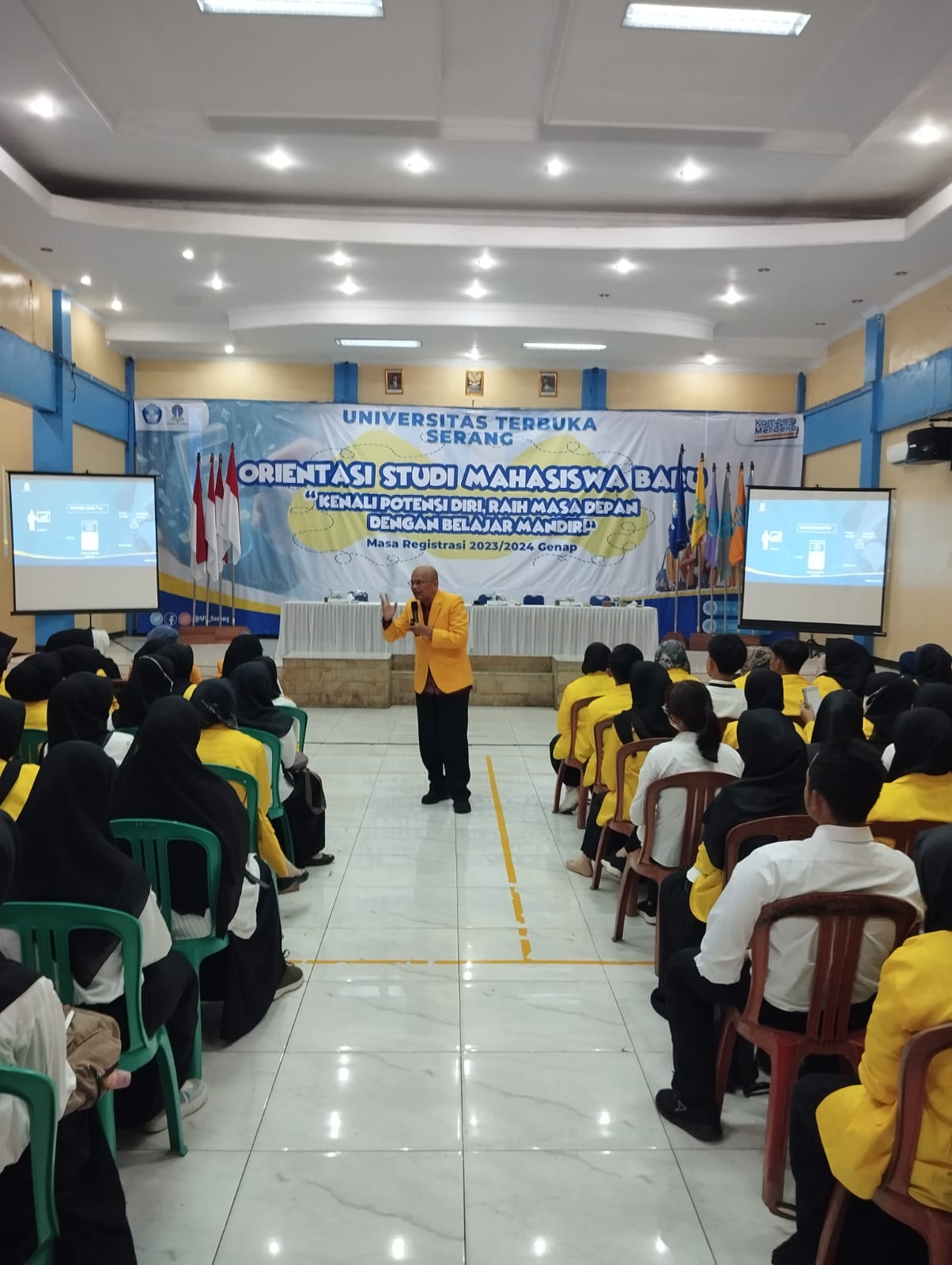 Sebanyak 245 Mahasiswa baru Universitas Terbuka (UT) Serang yang berdomisili di wilayah Kabupaten Lebak dan sekitarnya mengikuti kegiatan orientasi studi mahasiswa baru (OSMB) pada Minggu, 3 Maret 2024. Kegiatan dengan tema "Kenali potensi diri, raih masa depan dengan belajar mandiri" ini dilaksanakan di Gedung PGRI Rangkasbitung.