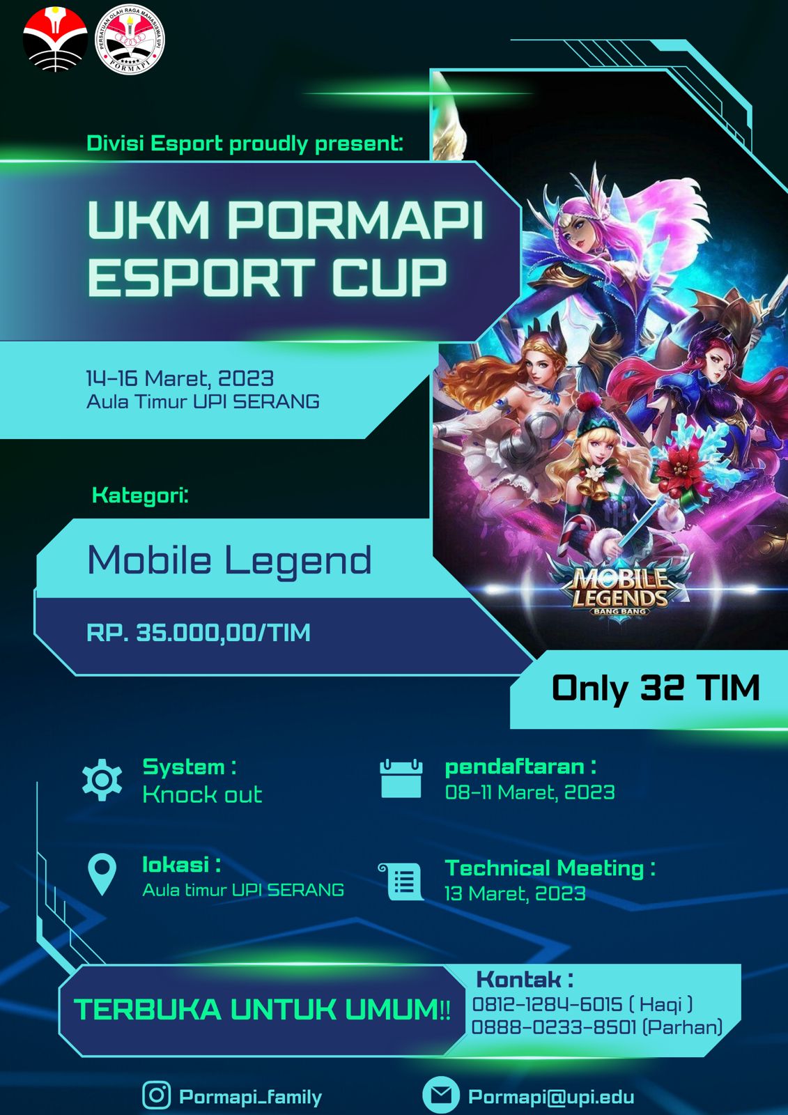 UT SERANG – Tim Mobile Legends UT Serang atau Speelwijk Banten, berhasil menjadi Juara 1 dalam ajang bertajuk UKM Pormapi Esport Cup yang diselenggarakan oleh Divisi Esport Pormapi UPI pada 14 -16 Maret 2023 di Aula Timur Universitas Pendidikan Indonesia – Serang. Squad yang beranggotakan Afif Fikri Wafiq, Rizqi Hairussofa, Slamet Juliansyah, Abel Ananda Zasya, Farid Miftahurrizqi Insani, dan Khairul Anwar ini mampu mengungguli pesaing lainnya dari berbagai Kampus di Provinsi Banten.